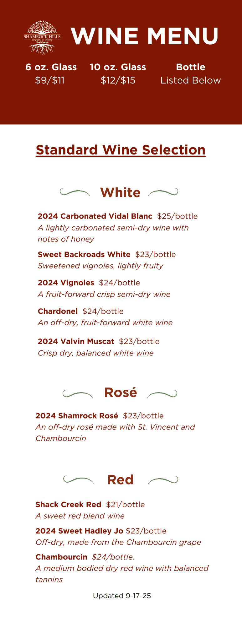 This sweet white is made from Vignoles that boasts lingering green apple aromas of the countryside.